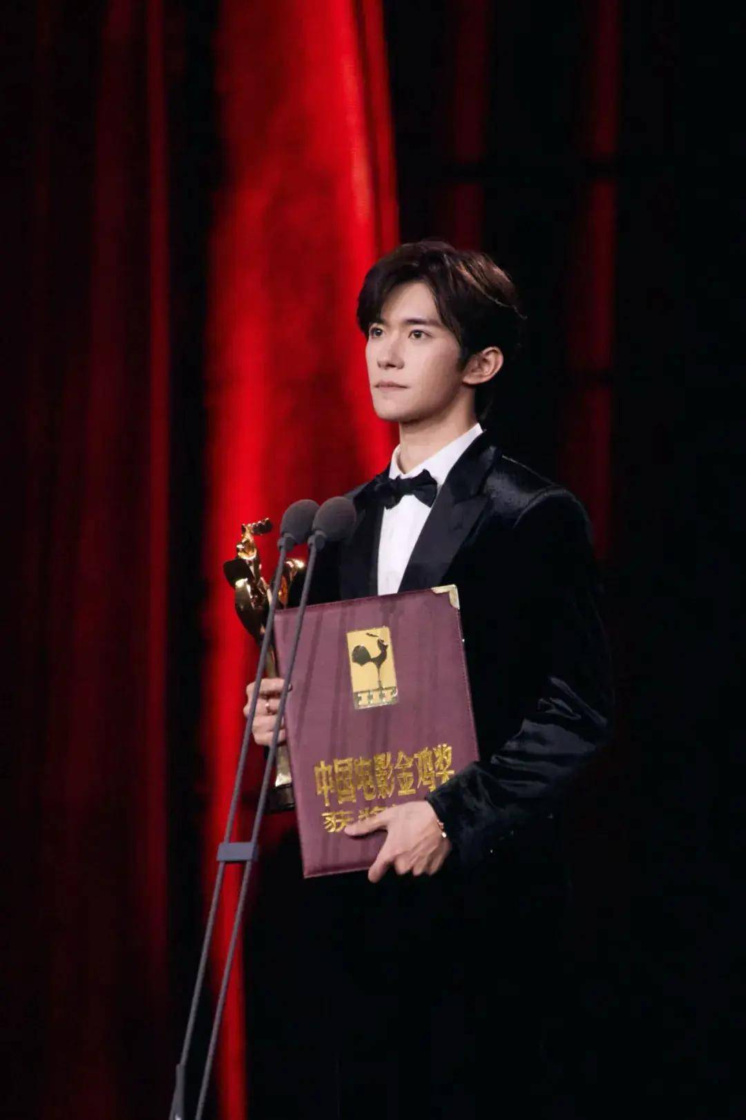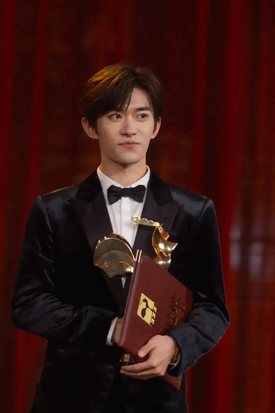在与“竞争对手”大鹏、黄晓明等人拥抱后,易烊千玺上台领取了自己的第一座金鸡奖最佳男主角奖杯,并在台上发表了真挚的获奖感言。还不岁的他,回顾了自己已经长年的职业生涯,他说,12岁时自己被选中出道,一直在高关注度、高压的工作中生活,“很荣幸接触到演员这个行业,未来道阻且长,希望能通过我的努力和作品,赢得观众发自内心的尊重。”